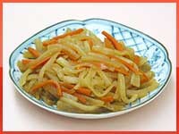 - 3:人参は鍋に油を適宜入れて炒めて、砂糖・しゅうゆ・酒で好みの味をつける。